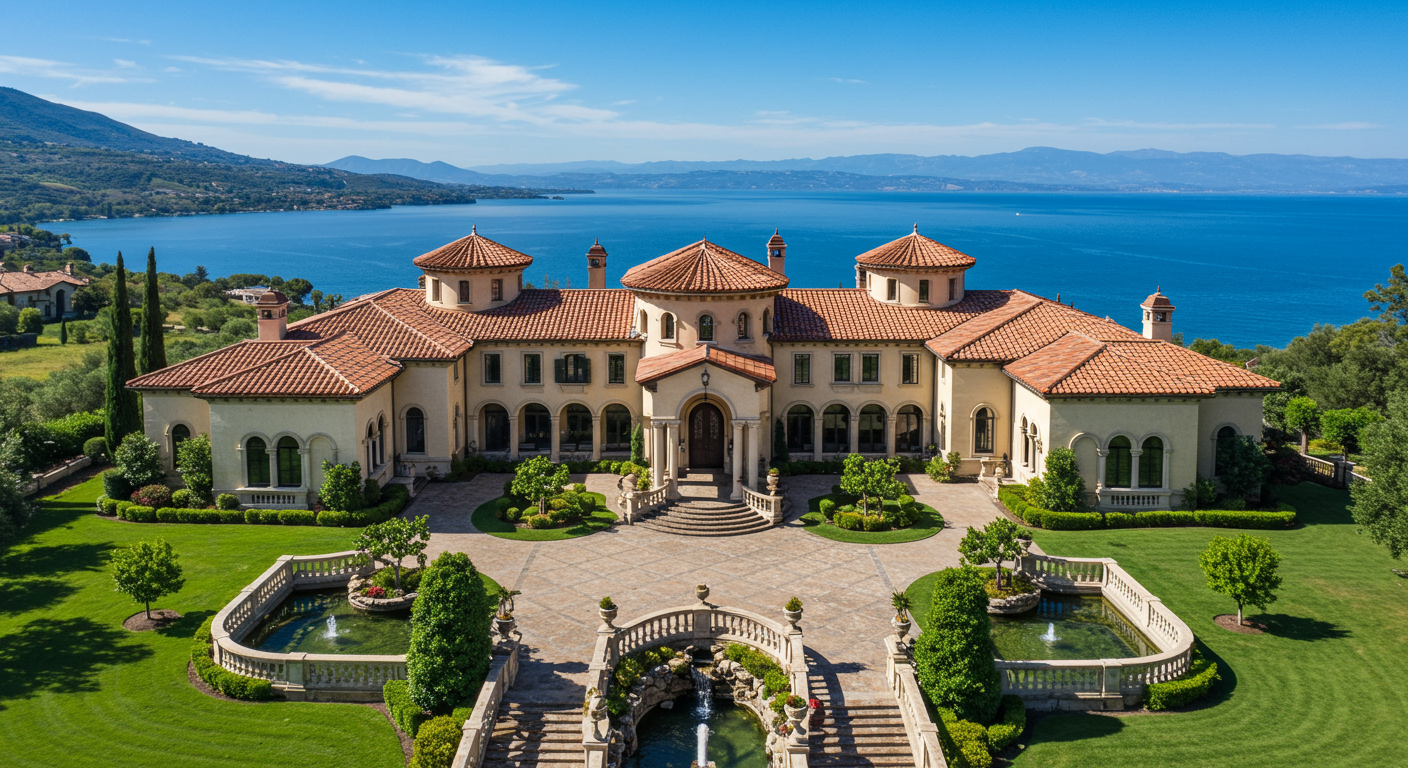 Hughes Park Road: Named "Villa Del Lago" and located off of RR 620, this 25-acre estate has two gated entrances; cascading waterfalls; six bedrooms; 13 bathrooms; a chef's kitchen with Viking appliances; Lake Travis and Texas Hill Country views; a rotunda foyer with a double staircase.; marble and herringbone wood floors; antique wood fireplaces; a game room; home theater; library; wine cellar; and a massage room.
