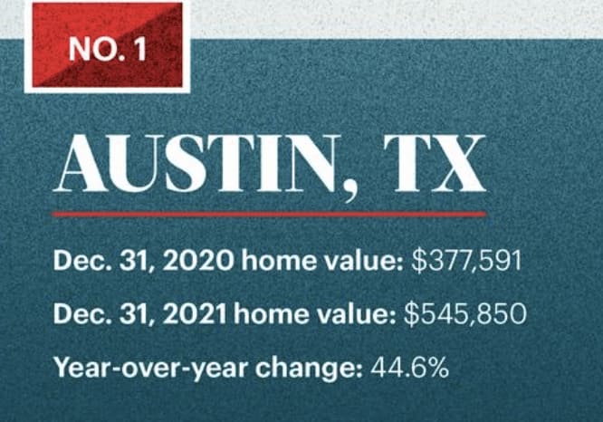 Unsurprisingly, a certain Texas capital city took the top spot, with more than 44% growth in home values over the year. But the state of Florida had the largest number of areas represented among fastest home-price appreciation. Areas in and around the Salt Lake City metro also outperformed.