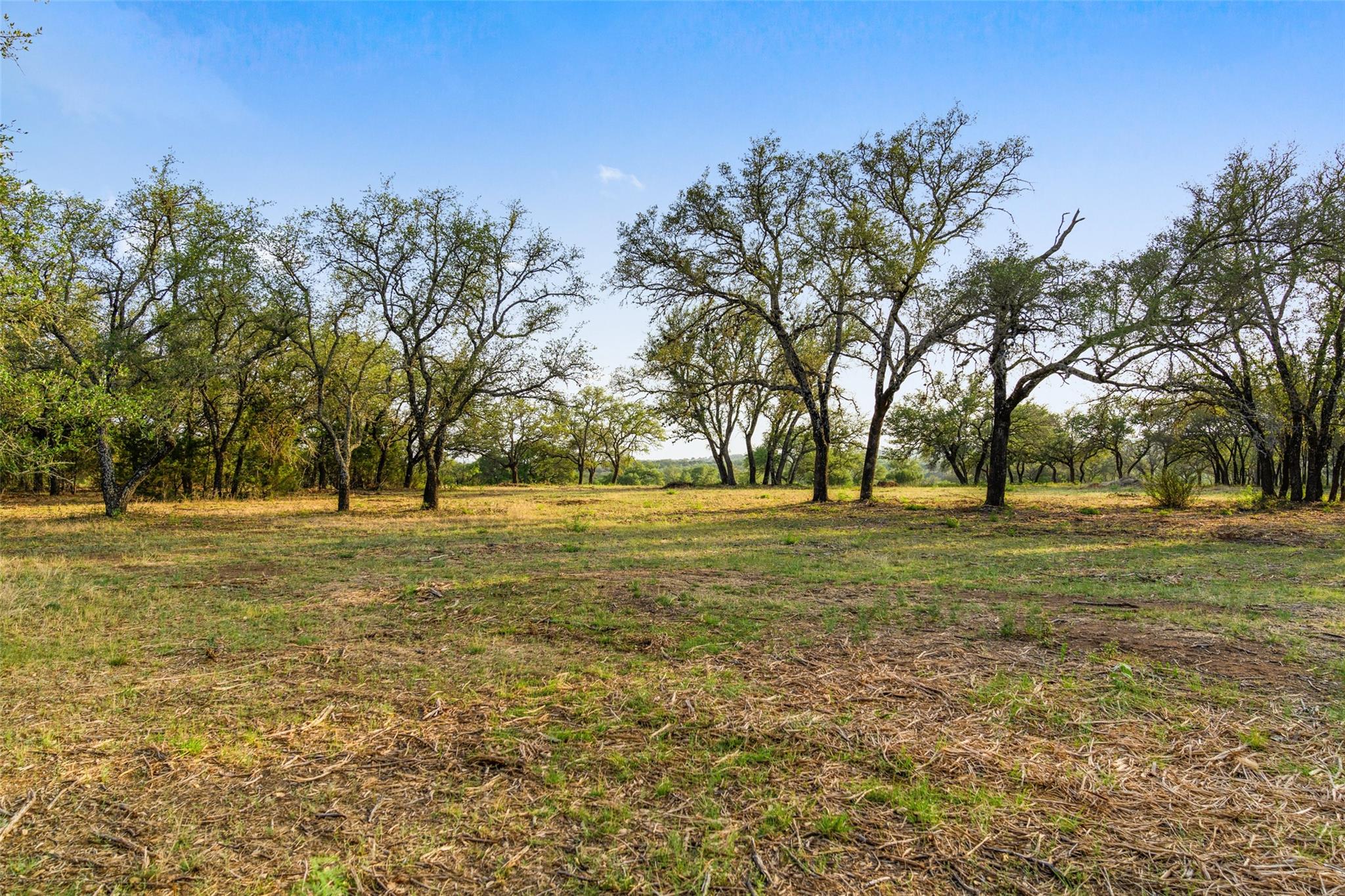 These gently rolling and terraced parcels feature prime topography--flat, highly usable land ideal for building--with rich soil and minimal clearing required. Graced by towering live oaks, Spanish oaks, and fragrant mountain laurels, the lots are predominantly cleared of cedar, creating a parklike setting that is both picturesque and practical.