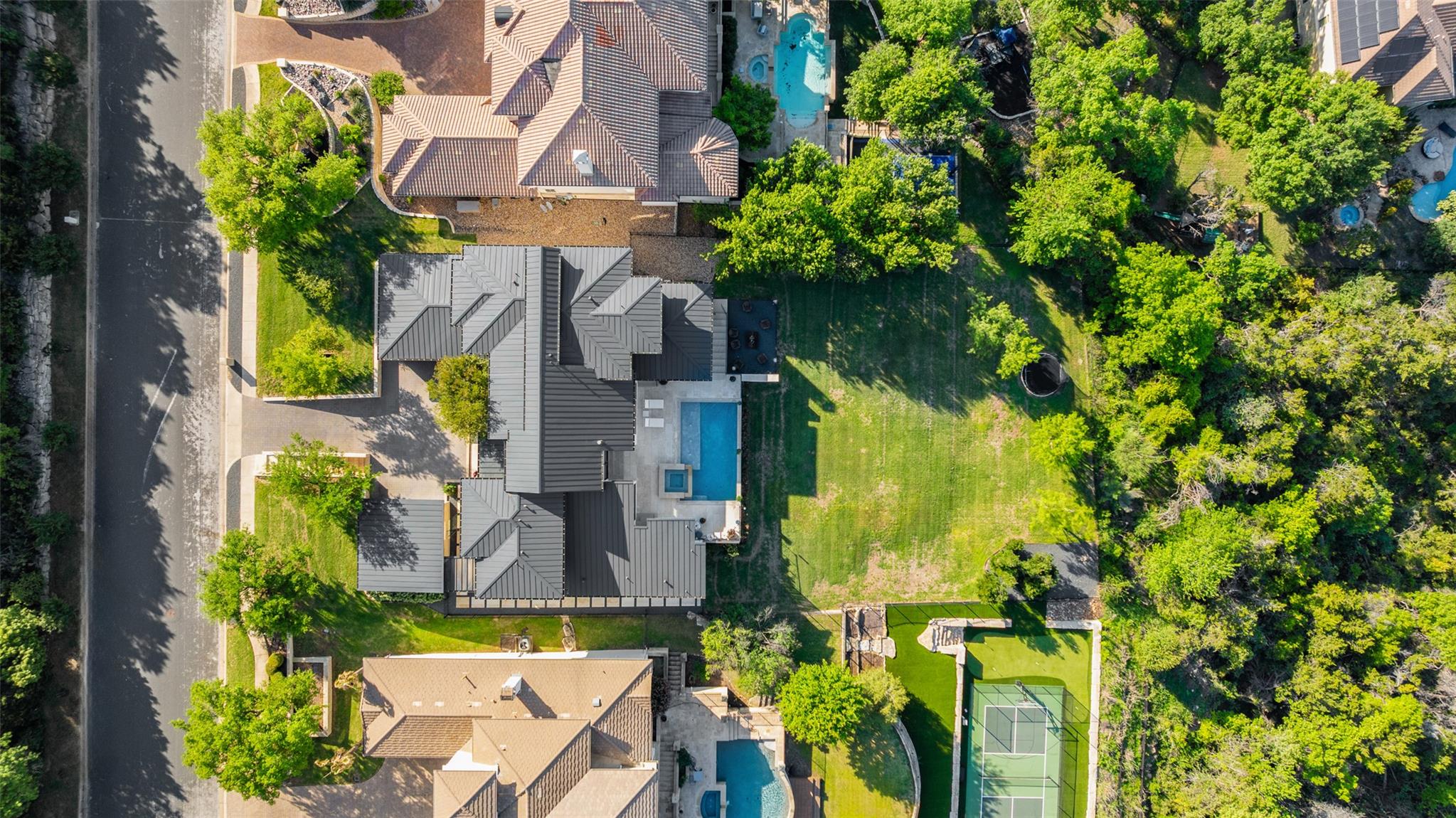 Modern elegance meets breathtaking views at 2551 Waymaker Way, a striking architectural residence in the coveted Davenport Ranch community of Westlake. This contemporary home is defined by clean lines, walls of glass, and an open-concept layout that embraces indoor-outdoor living. At its heart is a sleek, modern kitchen with top-of-the-line appliances, ample cabinetry, and seamless flow into the formal dining area and grand living room. Walls of windows invite in natural light and frame stunning Hill Country sunsets. The main-floor primary suite is a private retreat featuring soaring ceilings, a cozy sitting area with pool and sunset views, and an expansive spa-like bath with a soaking tub, walk-in shower, dual vanities, separate wet room, and oversized custom closet. A dedicated office provides the ideal work-from-home setup, while a full guest suite, extensive mudroom with built-ins, and planning desk complete the main level. Upstairs, three additional bedrooms, a second laundry room, generous storage, and a spacious game room lounge with wet bar offer flexible spaces for family and entertaining. Multiple balconies and terraces invite relaxation, while the outdoor living area is designed to impress--featuring a fireplace, summer kitchen, custom pool and spa, fire pit lounge, and large private yard. With two separate two-car garages, this home effortlessly combines luxury, functionality, and lifestyle. Families will appreciate the location within the esteemed Eanes ISD, renowned for exceptional academics. Students attend Bridge Point Elementary, Hill Country Middle, and nationally recognized Westlake High School. Within Davenport, residents enjoy tennis courts, a playground, and a walking trail. Also located in close proximity to scenic parks, exclusive country clubs, and abundant shopping and dining options, all just a short drive away--offering a lifestyle that blends tranquility with the vibrancy of Austin living.